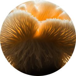 our wild growing mountain olive trees, a multitude of different mushrooms grow beneath them, which naturally act in synergy with the ground leaves of our ecologically certified mountain olive trees.