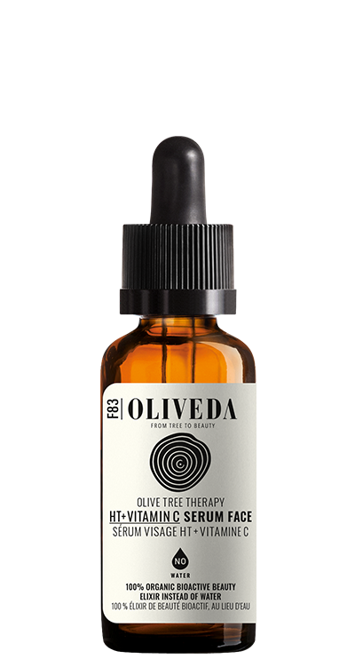In line with our philosophy "From Tree to Beauty", OLIVEDA combines organic and bioactive vitamin C with autochthonous hydroxytyrosol in HT + Vitamin C Facial Serum, which further advances the antioxidant properties of natural vitamin C by over 1300%. The water-free formulation and absence of any fillers creates a highly beneficial facial treatment that is also suitable for the décolleté and back of the hands. It contributes to the appearance of skin tone, tightening, as well as dark spots, skin imperfections and counteracts the signs of maturing skin. Based on the bioactive Beauty Elixir, which is autochthonous and exclusive to OLIVEDA's own and eco-certified mountain olive trees, it creates a phytosynergy that makes any complexion glow.